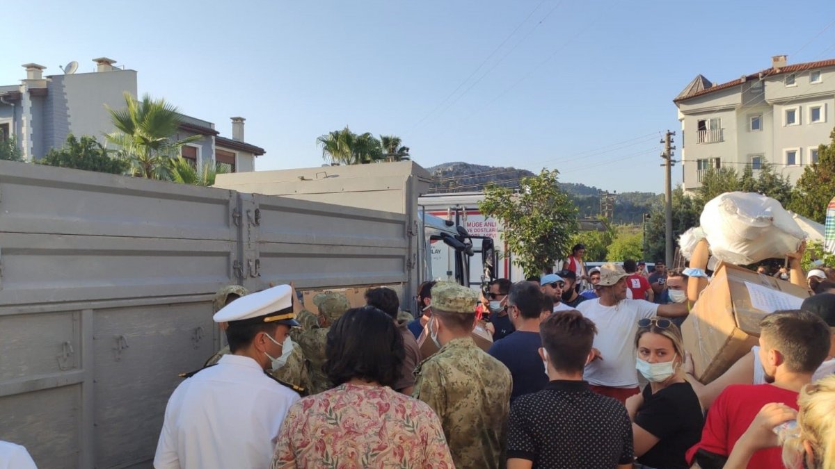 Milas'ta devam eden yangına karşı sahada bulunan Mehmetçik, vatandaşlarla birlikte söndürme çalışmalarında yer alıyor.