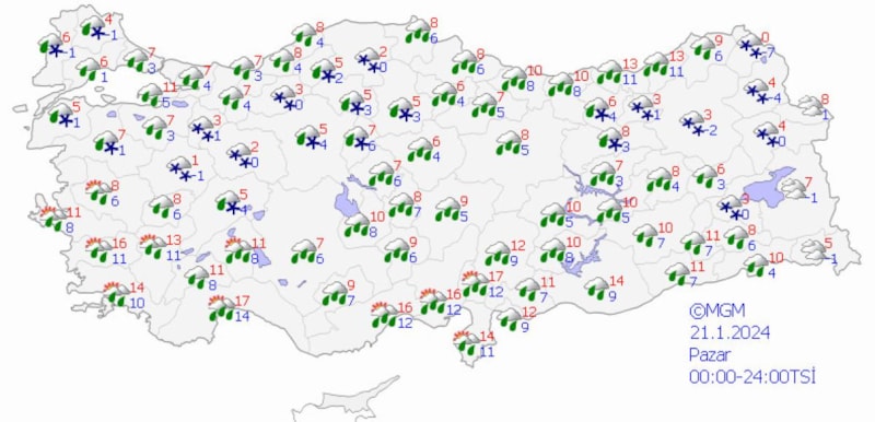 Sabah saatlerinden itibaren İç Anadolu'nun güneyinde beklenen yağışların Konya'nın kuzey ve batısı ile Aksaray'ın güneyinde kuvvetli yağmur, zamanla karla karışık yağmur ve yüksek kesimlerde kuvvetli kar yağışı şeklinde olması bekleniyor.