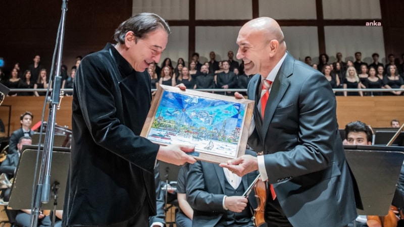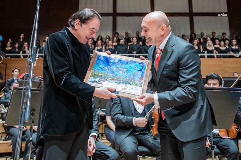 Marşın seslendirilmesinin ardından sahneye gelen İzmir Büyükşehir Belediyesi Başkanı Tunç Soyer, Fazıl Say ve tüm orkestrayı tebrik etti.