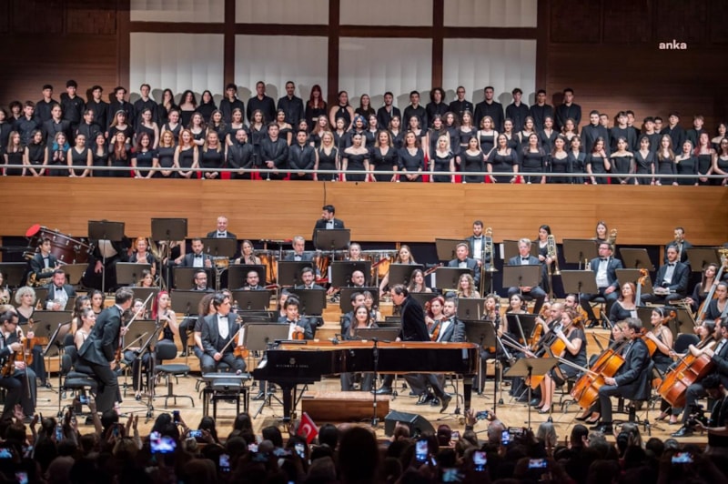 230 kişilik kadro ile 100. Yıl Marşı'nı seslendiren Fazıl Say ve ekibi ayakta alkışlandı.