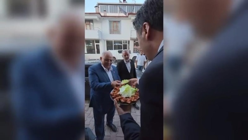 Vali Aygöl, çiğ köfte tabağını yanındakilere uzatarak ikramda bulundu.