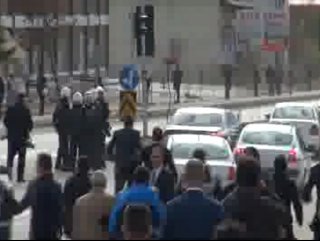 MHP Genel Başkanı Devlet Bahçeli'nin Tunceli'yi ziyaretine tepki gösterenler protesto gösterisi düzenledi. Bir kişi Bahçeli'nin makam aracının önüne atlayarak zafer işareti yaptı.