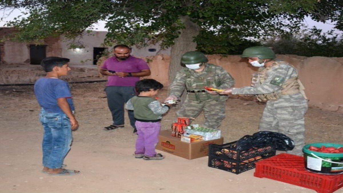 Milli Savunma Bakanlığı (MSB) tarafından yapılan paylaşımda, Barış Pınarı bölgesindeki Mehmetçiklerin, yemeğini bölgedeki halkla paylaştığı görüldü.