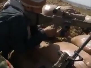 Görüntülerde keskin nişancı tüfeğiyle atış yapan SMO askerini, Mehmetçik yönlendiriyor.