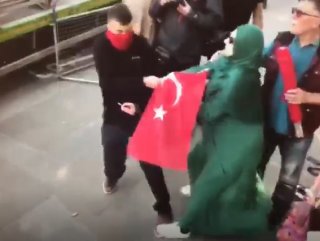 Bu sırada elinde Türk bayrağı olan herkese saldırmaya kalkışan PKK yandaşları, İngiliz polisi tarafından engellendi.