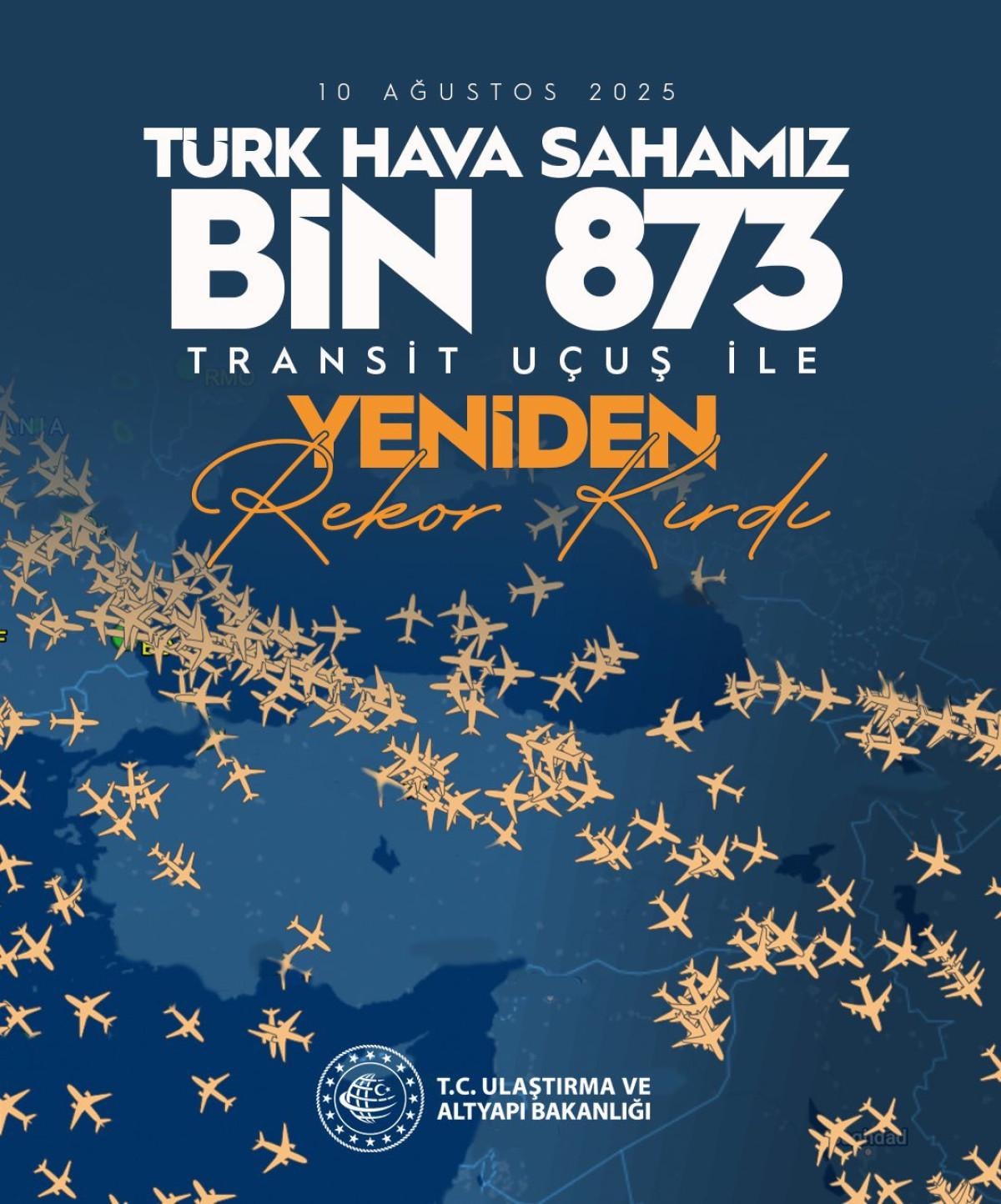 10 Ağustos 2025’te Türk hava sahasında 1873 transit uçuş ile tüm zamanların rekoru kırıldı.