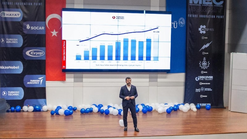 İstanbul Teknik Üniversitesi’nin düzenlediği ‘’Kariyer Zirvesi’ ’etkinliğinde, işe alım politikaları ve süreçleri hakkında konuşma yapan Türk Hava Yolları İnsan Kaynaklarından Sorumlu Genel Müdür Yardımcısı Abdulkerim Çay; ‘’Ortaklığımızın büyüme stratejileri doğrultusunda her yıl çalışan sayımızı artırmaya gayret ediyor; istihdamı artırma politikalarımızla Türkiye ekonomisine katkı sunmaya çalışıyoruz.