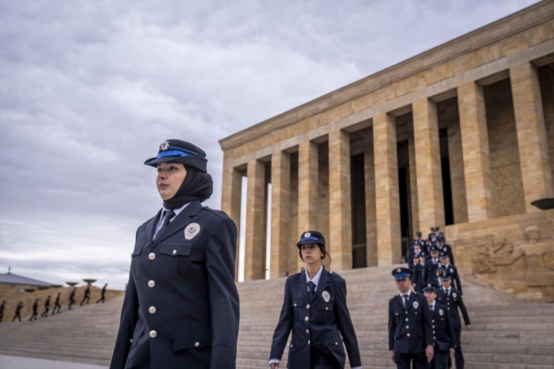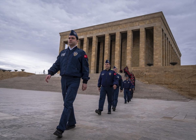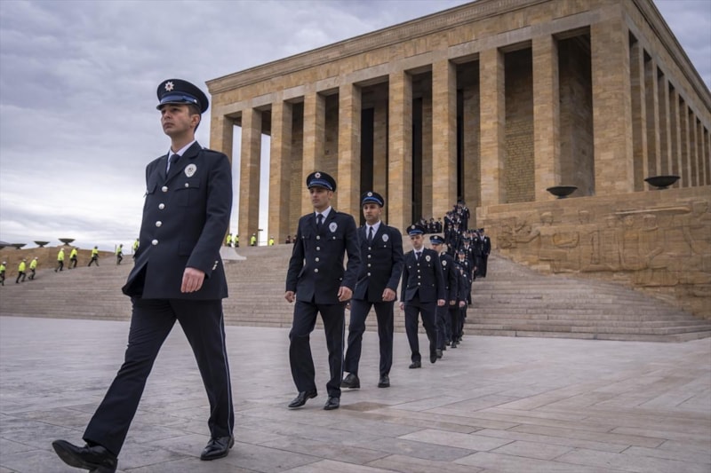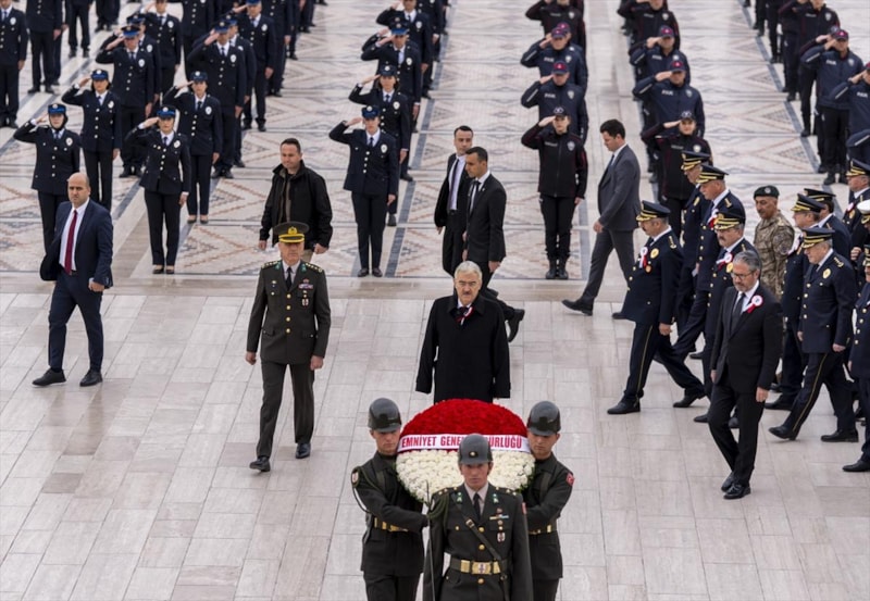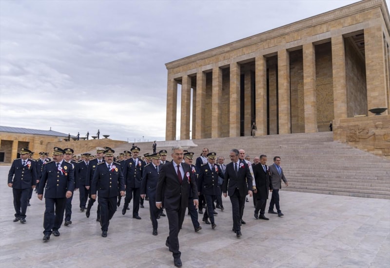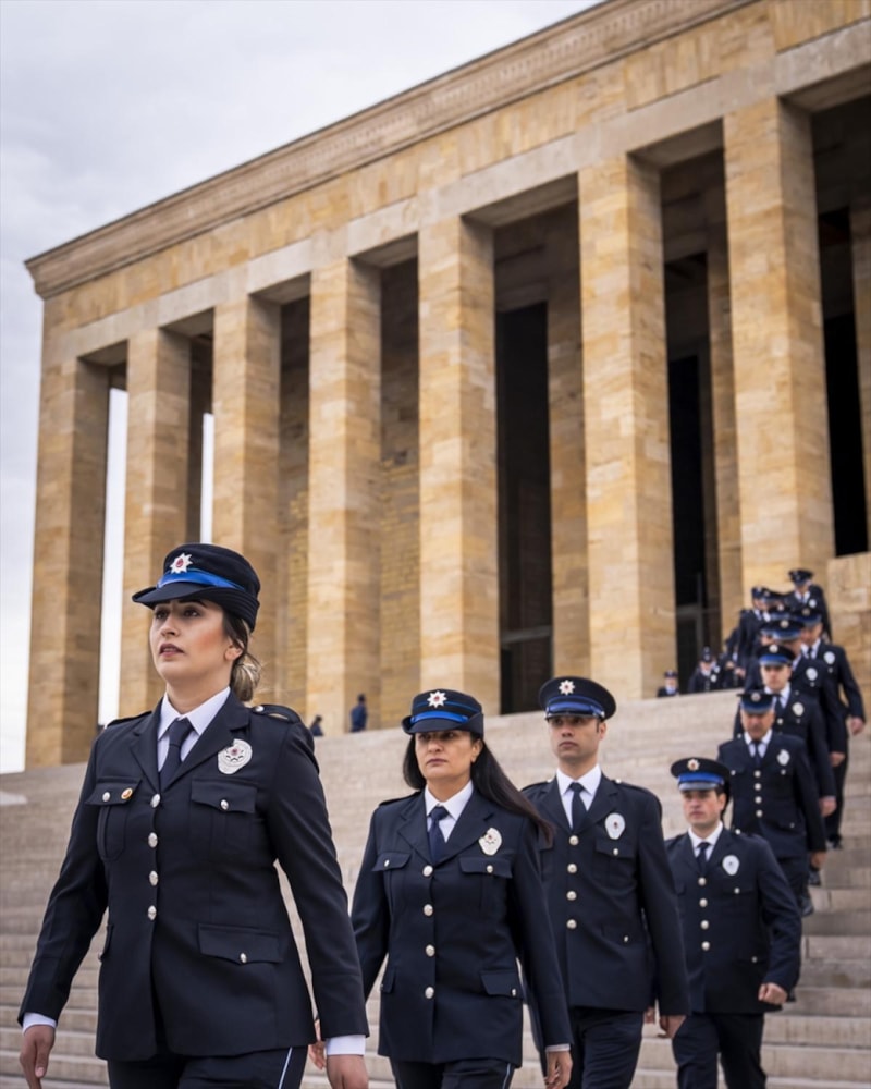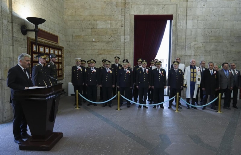 Emniyet Genel Müdürü Erol Ayyıldız, Polis Akademisi Başkanı Prof. Dr. Yılmaz Çolak, Ankara Emniyet Müdürü Engin Dinç ve daire başkanları, Aslanlı Yol'dan yürüyüp Atatürk'ün ün mozolesine çıktı.