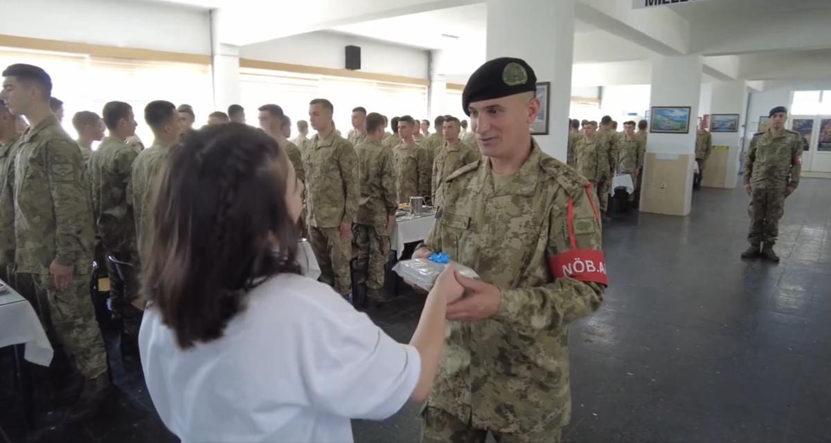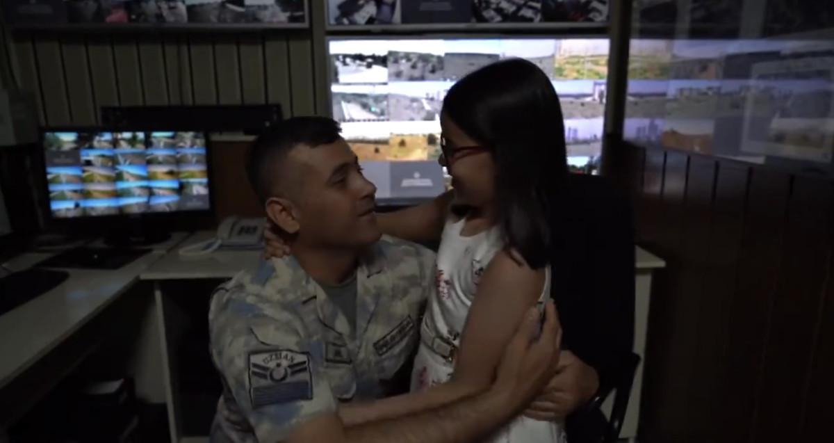 Videoda çocukların da görevli askerlerin 'Babalar Günü'nü kutladığı görülüyor.