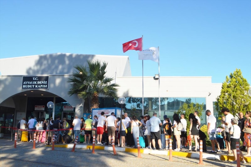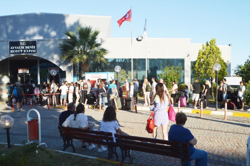 İstanbul, İzmir, Bursa, Ankara, Muğla, Balıkesir, Manisa ve Kocaeli gibi büyükşehirlerden gelen tatilciler, turizm acentelerinin yoğunluk nedeniyle ilave seferlerle hizmet verdiği geçişler için Ayvalık Deniz Hudut Kapısı önünde uzun kuyruklar oluşturuyor.