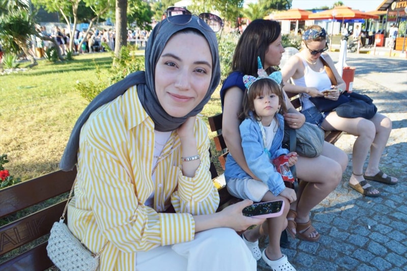 İstanbul'dan gelen Beyza Keskin de güneydeki tatil merkezlerine göre yaşadığı kente yakınlığından dolayı Midilli'yi seçtiklerini kaydederek, "Kapıda kolay vize uygulamasıyla da evrakımız bayrama yetişti." ifadesini kullandı.