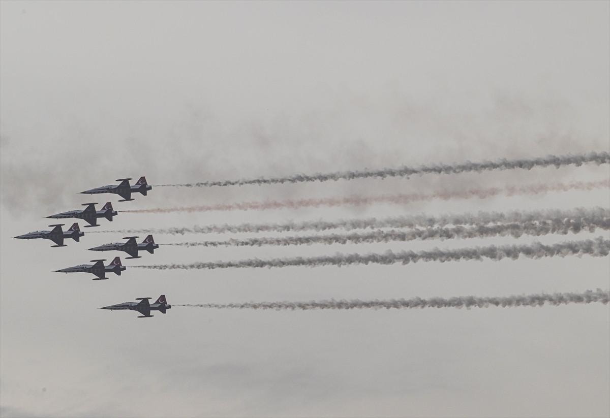 Erdoğan'ın göreve başlama törenleri için Türk Hava Kuvvetleri’nin akrobasi timi Türk Yıldızları bir gösteri uçuşu gerçekleştirdi.
