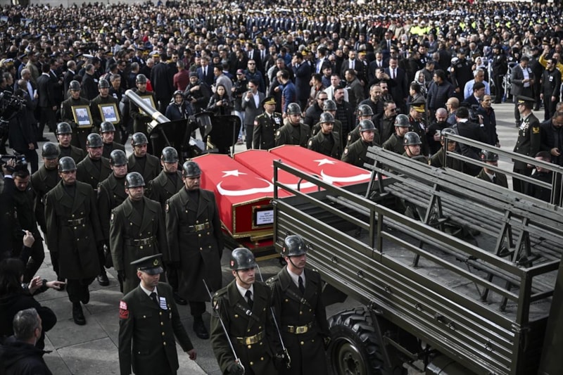 Şehit Hv. Plt. Ütğm. Cüneyt Kandemir, Şehit Hv. Uçk. Bkm. Asb. Kd. Bçvş. Ümit İnce ve Şehit Hv. Ulş. Uzm. Çvş. Cem Dolapci için Ankara'da, Ahmet Hamdi Akseki Camii'nde cenaze töreni düzenlendi ve son yolculuklarına uğurlandı.