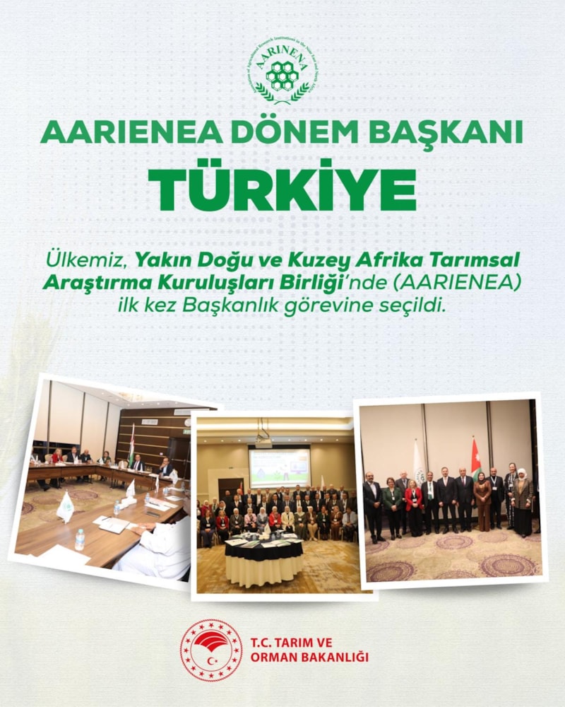 Türkiye, Yakın Doğu ve Kuzey Afrika Tarımsal Araştırma Kuruluşları Birliği'nde (AARIENEA) ilk kez başkanlık görevine seçildi.