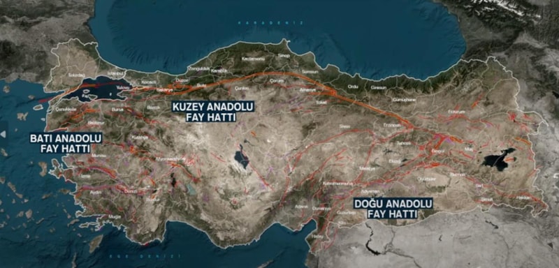 MTA’nın yenilenmiş Türkiye deprem risk haritası fay hattına göre Türkiye'de Kuzey, Doğu ve Batı Anadolu diye adlandırılan üç büyük fay hattı yer alıyor.