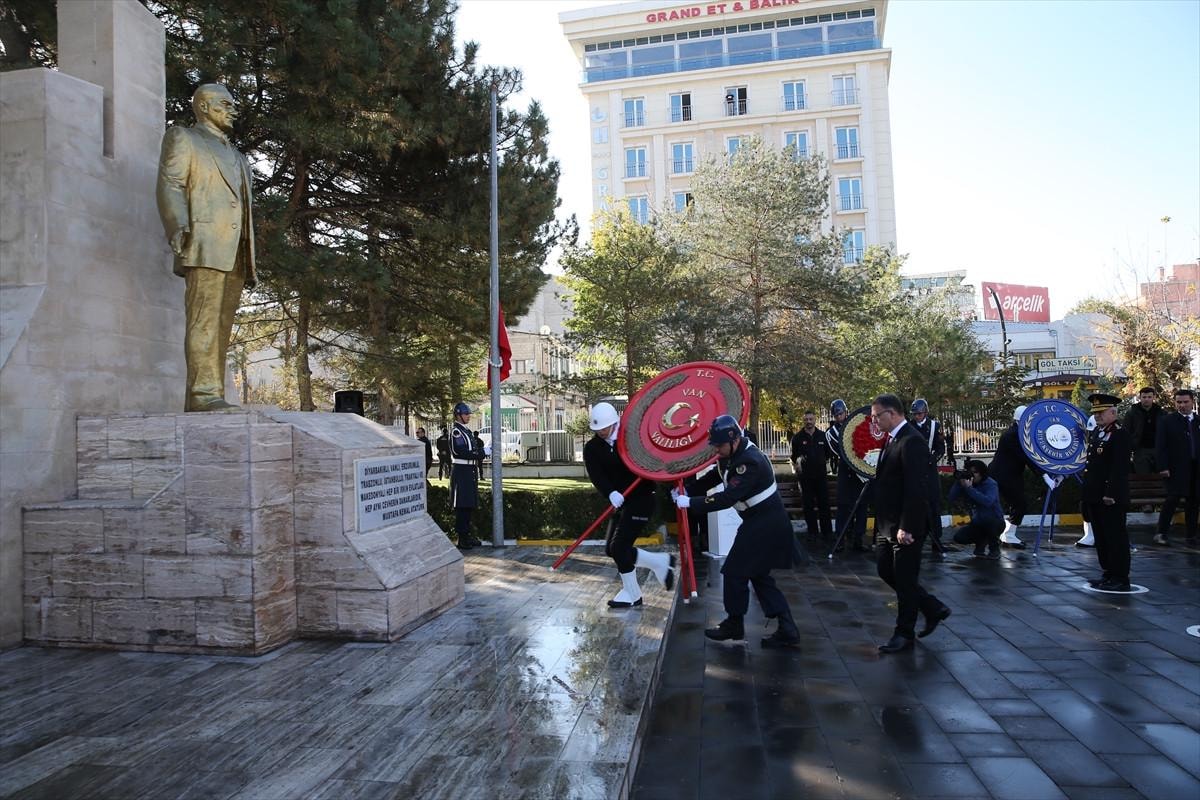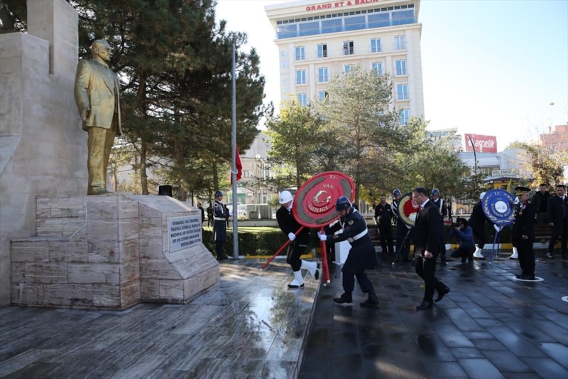 Van Valiliği önünde Atatürk Anıtı'na çelenklerin sunulmasıyla başlayan törende, vatandaşlar saat 09.05'te sirenlerin çalmasıyla saygı duruşunda bulundu.