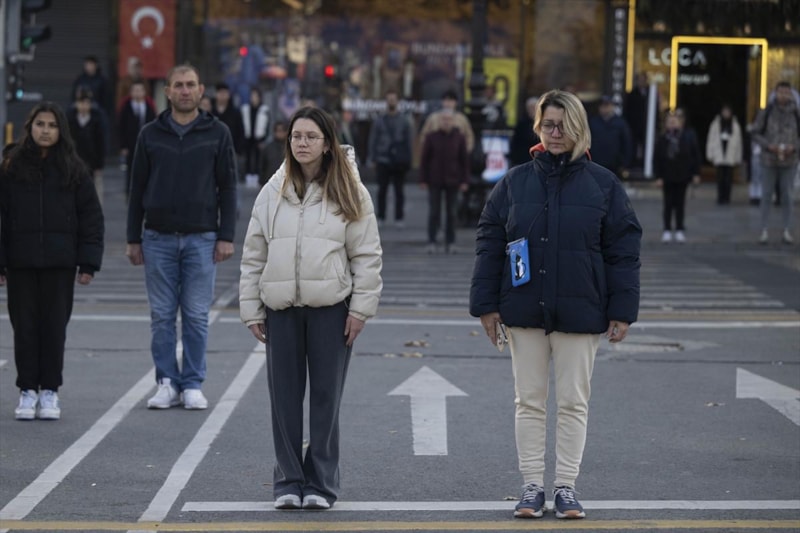Cadde ve sokakların acı acı çalan siren sesiyle inlediği saatlerde tüm vatandaşlar, saygı duruşuna geçti.