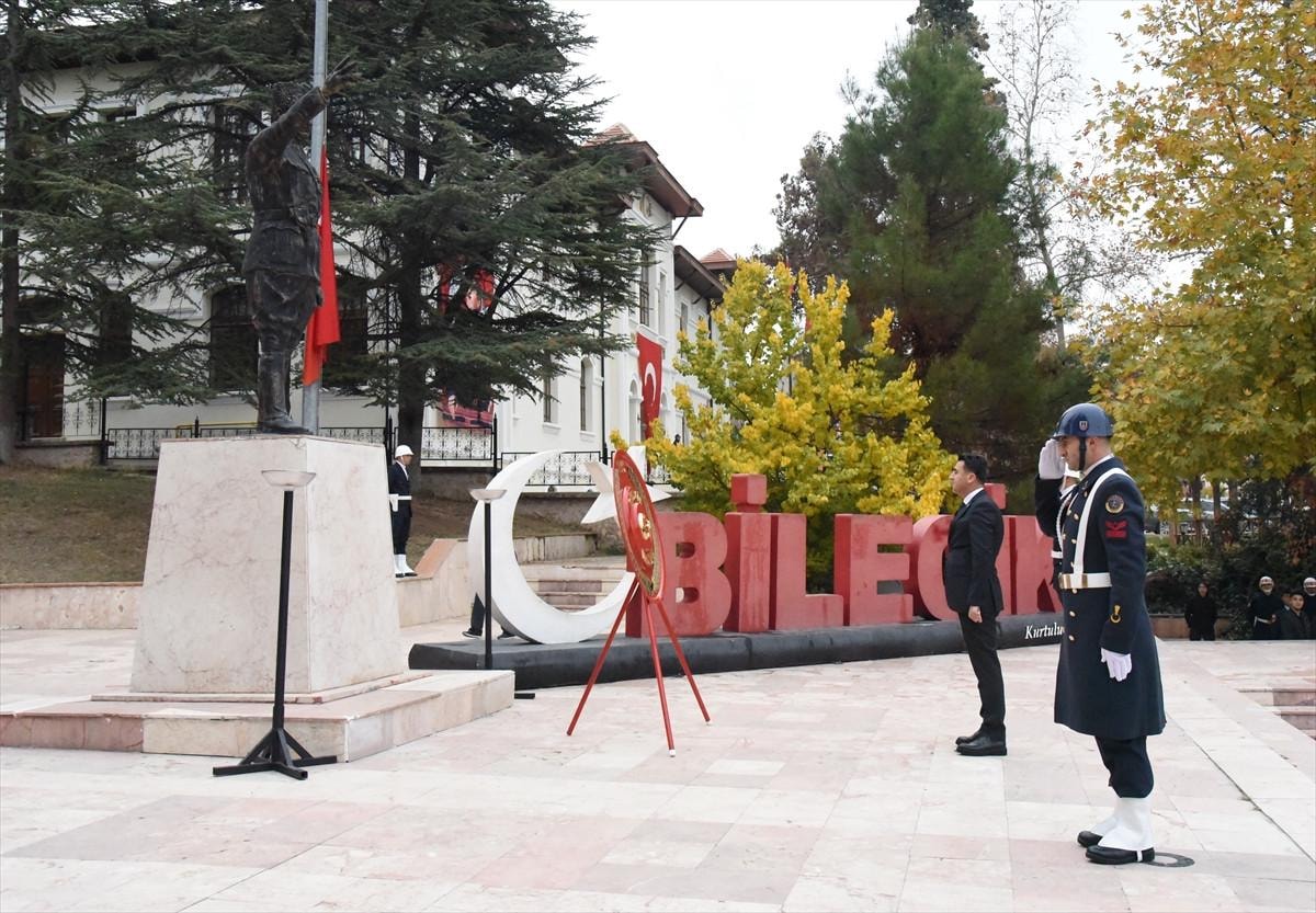 Bilecik'te Cumhuriyet Meydanı'nda düzenlenen tören sırasında çalan siren ile vatandaşlar saygı duruşunda bulundu.