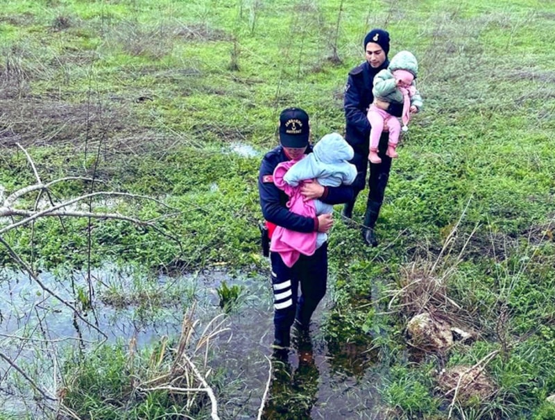 Bursa’da Uluabat Gölü yakınında mahsur kalan aile kurtarıldı.