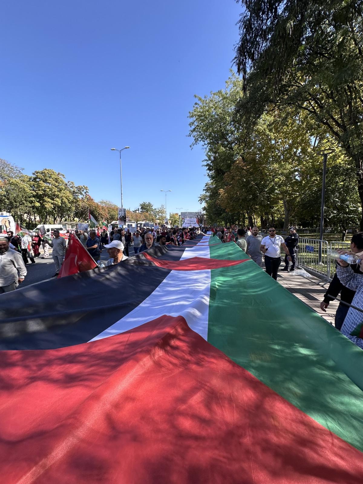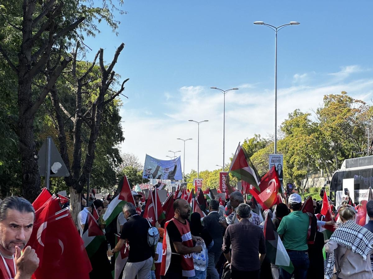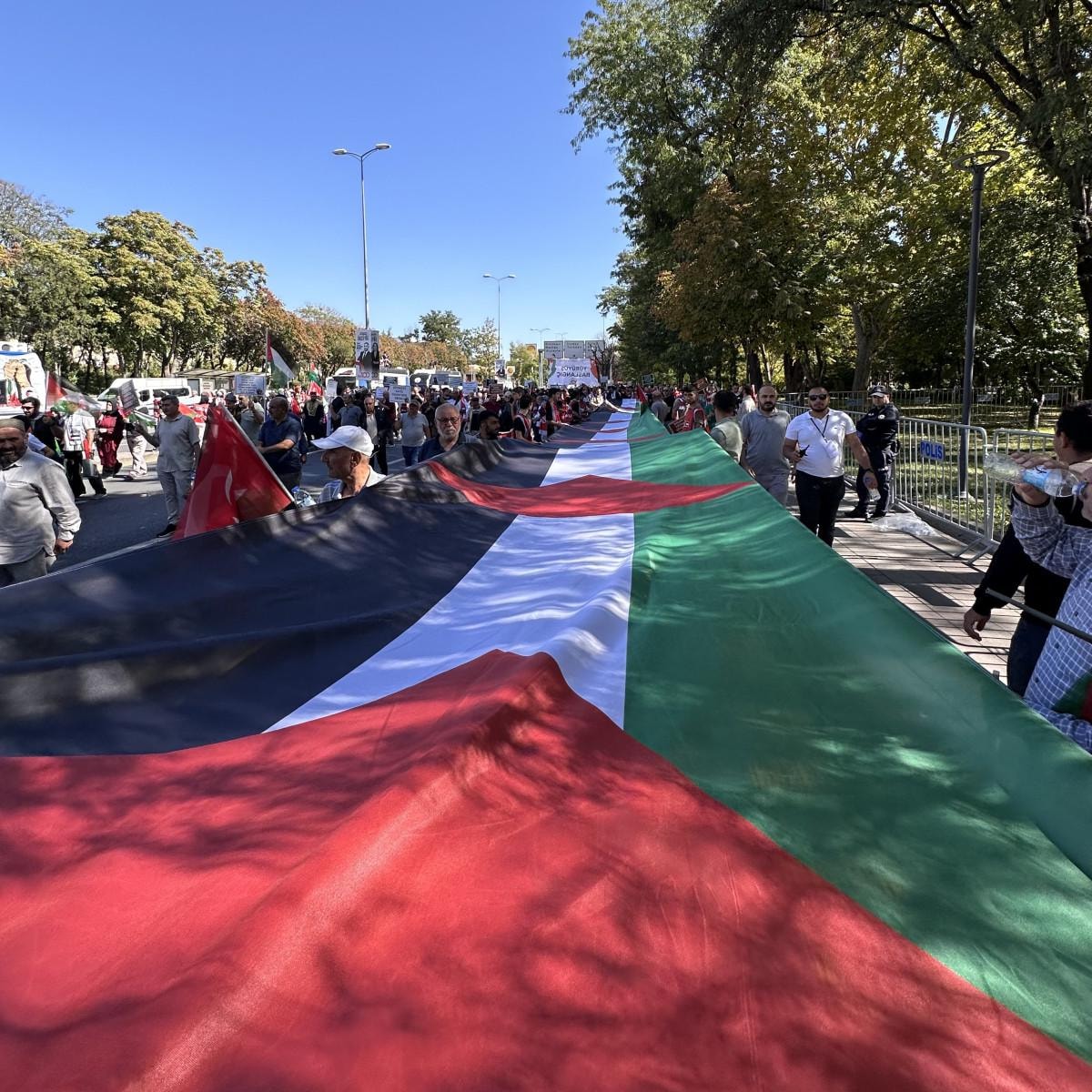 İsrail aleyhine sloganlar atılırken, Filistin'e ise destek mesajları gönderildi.