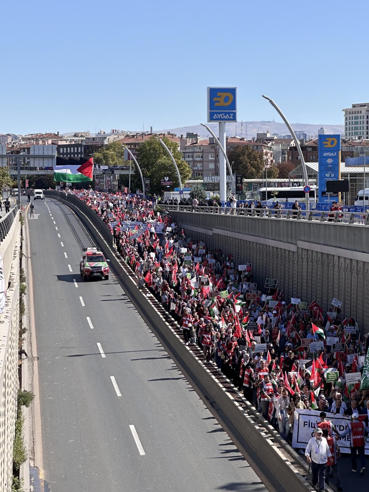 Binlerce kişinin katılımıyla gerçekleştirilen "Soykırıma İsyan Filistin'e Destek Yürüyüşü" kapsamında, İsrail'in zalimliğine dikkat çekiliyor.