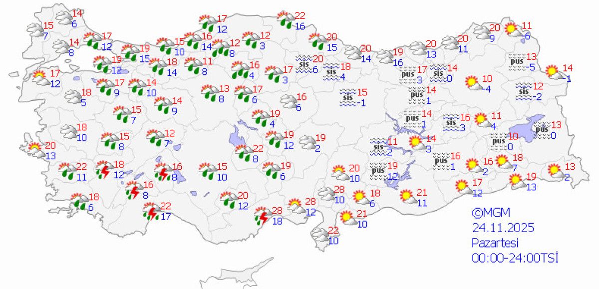 - Sıcaklıklar mevsim normallerinin üstünde seyredecek ve yeni hafta ile birlikte batıdan doğuya yağışlar ilerleyecek.
