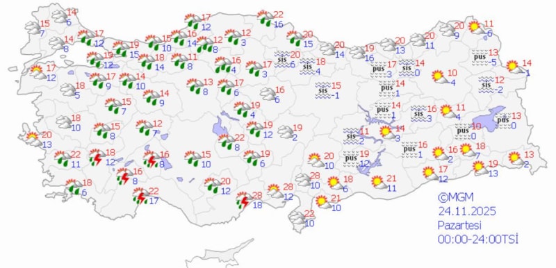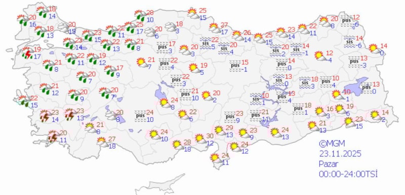 İzmir'de ise cumartesi günü kıyı ilçelerde beklenen yağışın pazar günü il genelinde görüleceğini kaydeden Tekin, sıcaklığın 22 ila 24 derecelerde olacağını bildirdi.