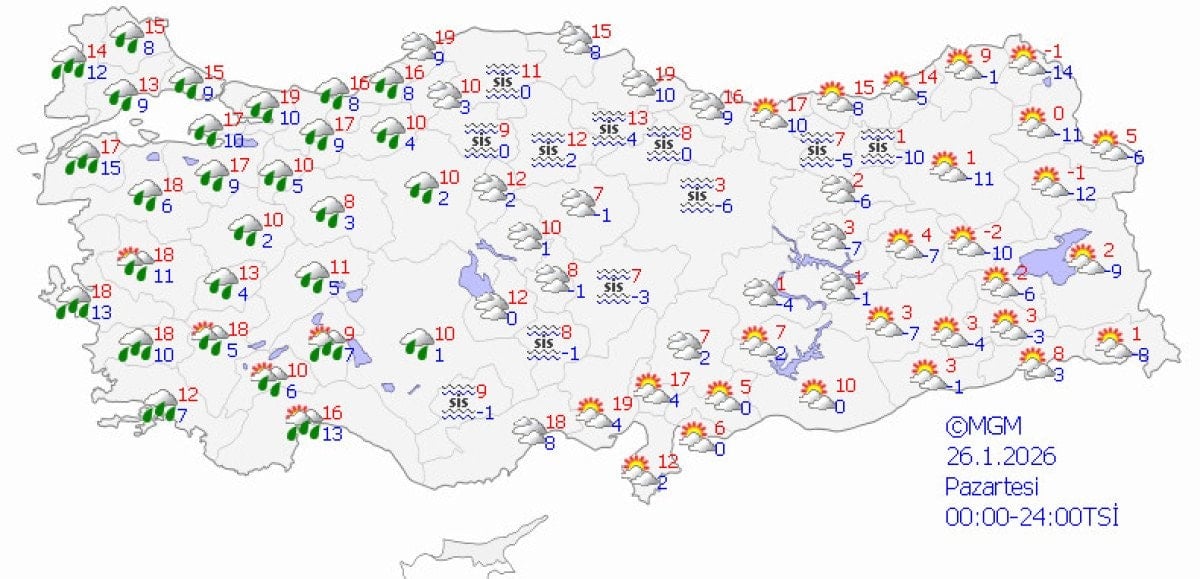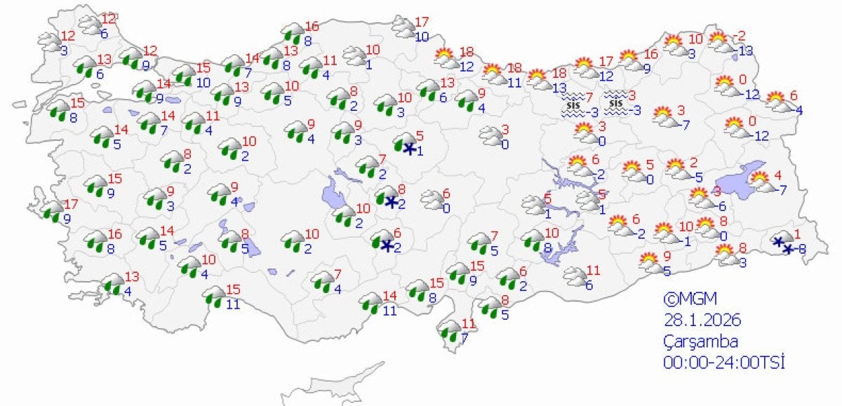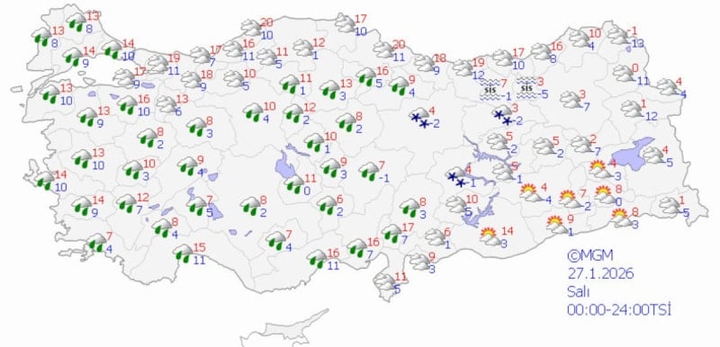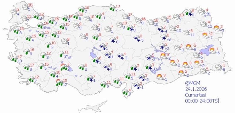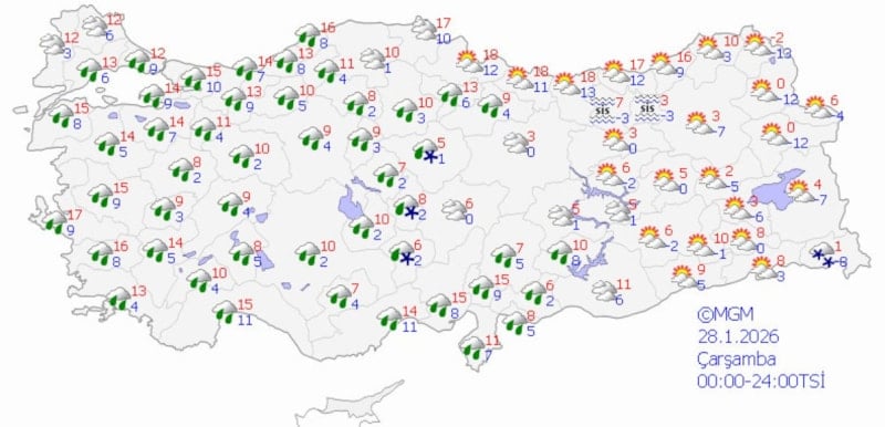 İzmir'de ise hafta sonu boyunca aralıklarla yağış görüleceğini belirten Yavuz, kuvvetli yağış beklenmediğini, sıcaklıkların 17 ila 19 derece civarında seyredeceğini ifade etti.