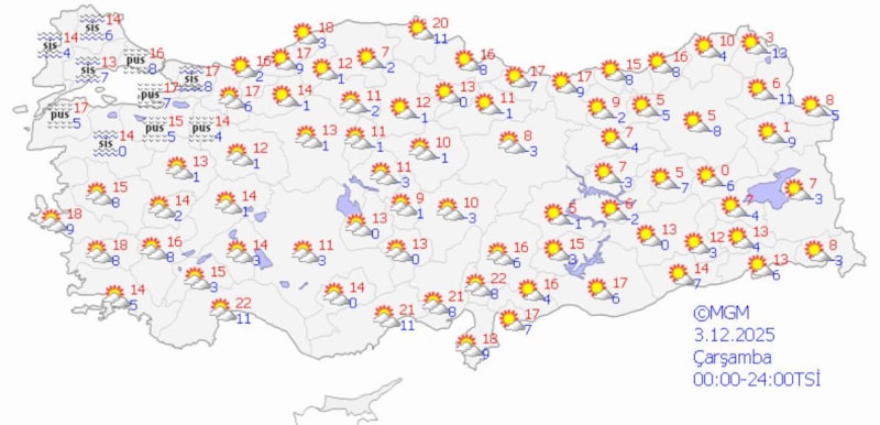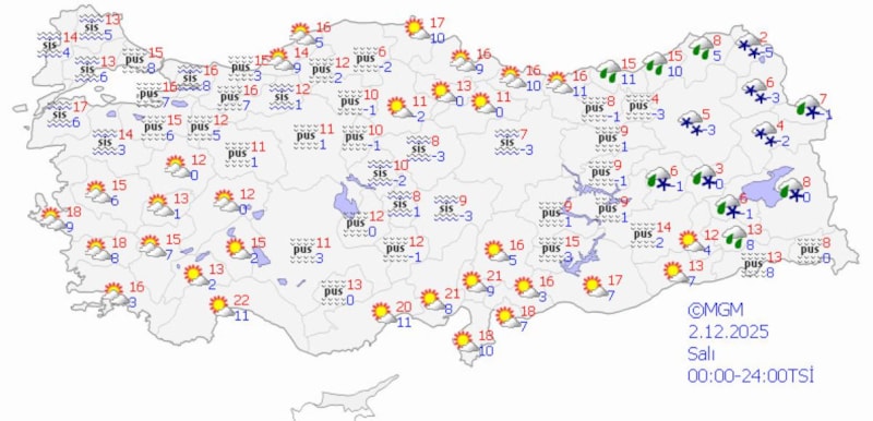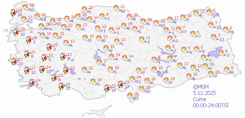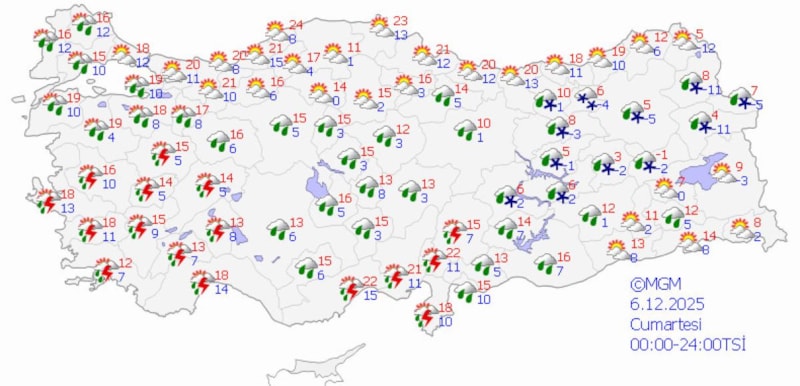 Meteoroloji Genel Müdürlüğü (MGM), aralık ayının ilk haftasında Türkiye genelinde parçalı ve çok bulutlu bir hava hakimiyetinin beklendiğini duyurdu.