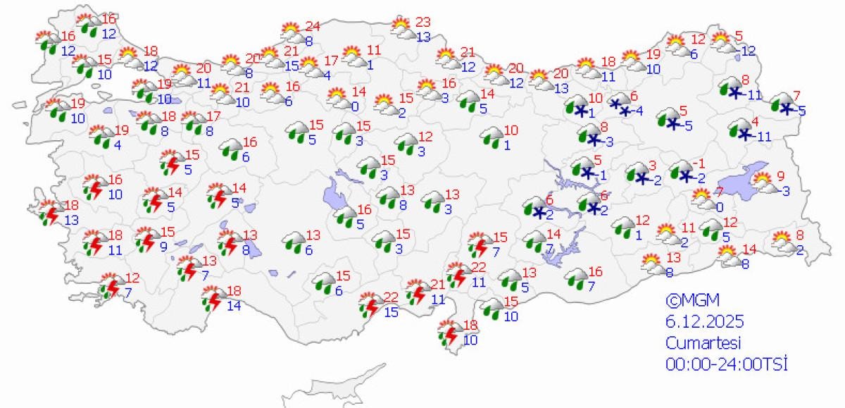 - Özellikle Marmara, Ege, Karadeniz ve Doğu Anadolu bölgelerinde sağanak yağış ve kar bekleniyor.