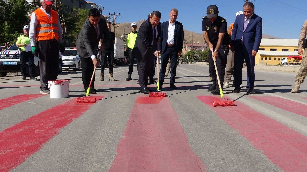 Yaşanan trafik kazaların önüne geçmek ve vatandaşı bilgilendirmek amacıyla başlatılan etkinlik kapsamında kent meydanlarında bulunan yaya yolları kırmıza boyandı.