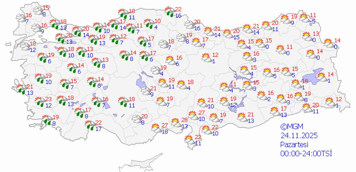 Pazartesi günü ise ülkeyi genel olarak az bulutlu ve güneşli bir gün bekliyor.
