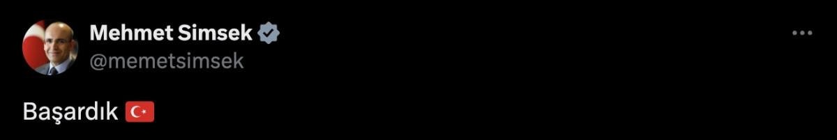 Şimşek, bu gelişmeyi resmi X hesabı üzerinden “Başardık” şeklinde bir gönderi yayınlayarak duyurdu.