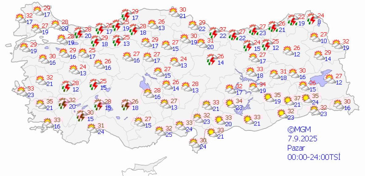 - Ülke genelinde pek çok bölgede yer yer kuvvetli sağanak ve gök gürültülü sağanak yağış bekleniyor.