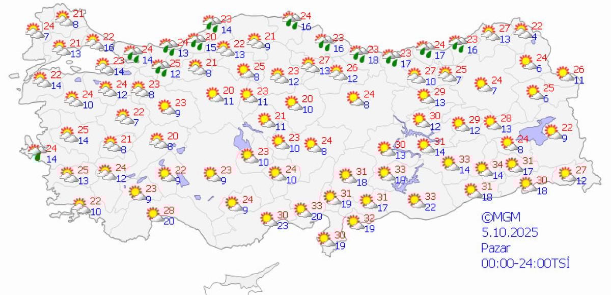 - Ege ve Akdeniz sahilleri ise güneşli ve sıcak hava koşulları yaşayacak.