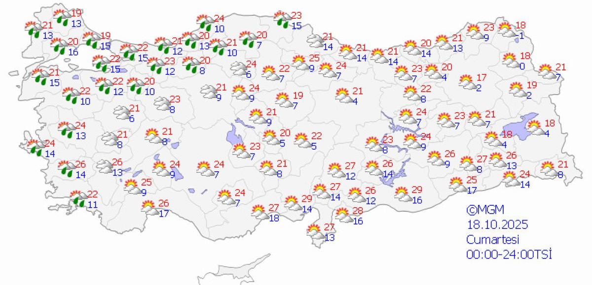 MGM'nin verilerine göre, hafta sonu en düşük ve yüksek sıcaklıklar şöyle şekillenecek: