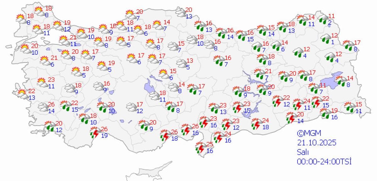 - Meteoroloji Genel Müdürlüğü'ne göre, Türkiye hafta sonu genelde yağışlı olacak, özellikle kuzey ve batı kesimlerde sağanak bekleniyor.