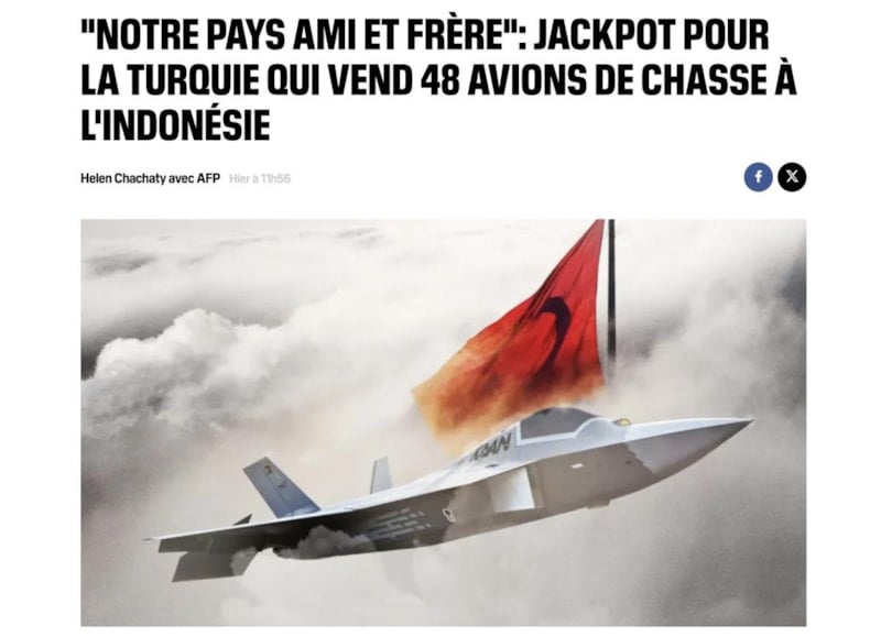 Fransız haber sitesi BFM TV, Türkiye'nin Endonezya ile imzaladığı 48 adet KAAN savaş uçağı ihracat anlaşmasını “Türkiye için Jackpot (Büyük İkramiye)” ifadesiyle manşetlerine taşıdı.