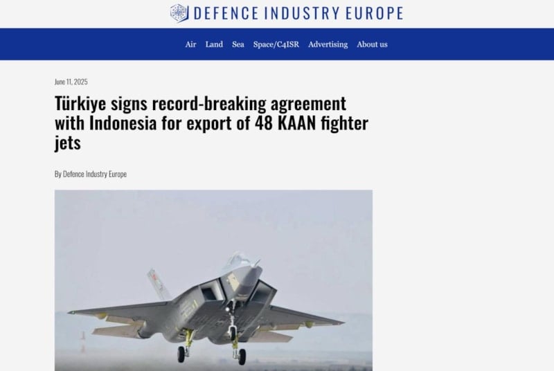Defence Industry Europe (DIE) haberi, “Türkiye, 48 KAAN savaş uçağının ihracatı için Endonezya ile rekor kıran bir anlaşma imzaladı” başlığı ile manşetine taşıdı.