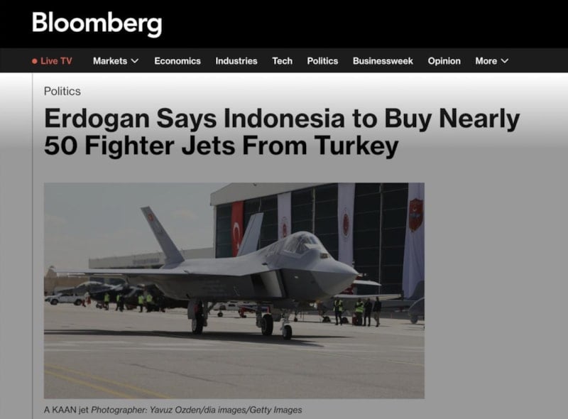 Bloomberg’in haberine göre, Cumhurbaşkanı Erdoğan anlaşmayı duyurduktan sonra, Endonezya Cumhurbaşkanı Prabowo Subianto’nun ofisi, beşinci nesil jet tedarikine ilişkin bir mutabakat zaptı imzalandığını doğruladı.