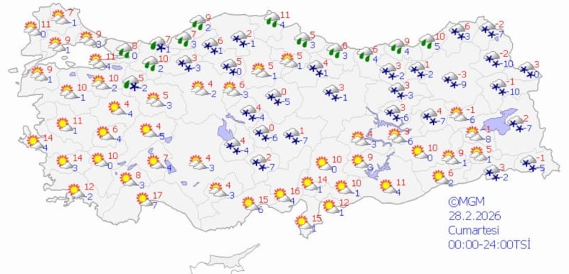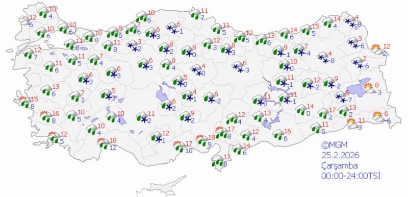 MGM'nin verilerine göre, İç Anadolu ve Doğu Anadolu başta olmak üzere yurt genelinde hava sıcaklıkları hissedilir derecede azalıyor. Karadeniz ve yüksek rakımlı bölgelerde yoğun kar yağışı gözlemlenirken, kıyı şeritlerinde karla karışık yağmur etkili oluyor.