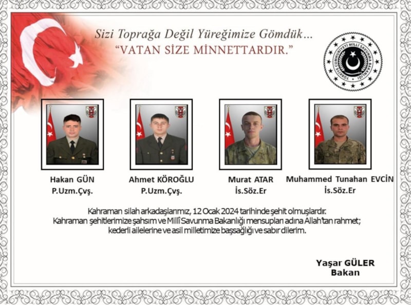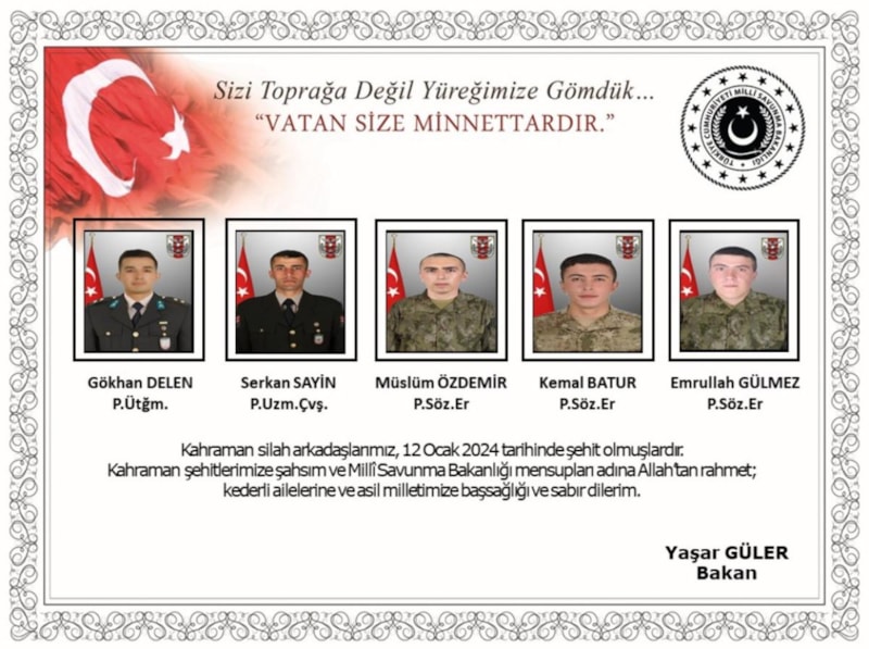 Bakanlık tarafından yapılan açıklamaya göre, teröristlerle çıkan çatışma sonucu şehit düşen askerler şu şekilde: