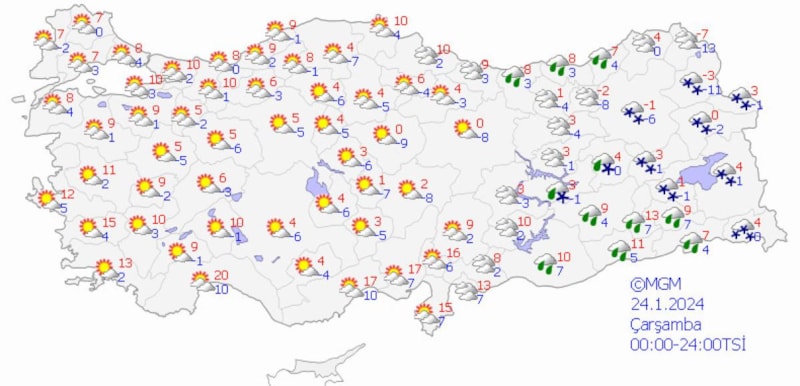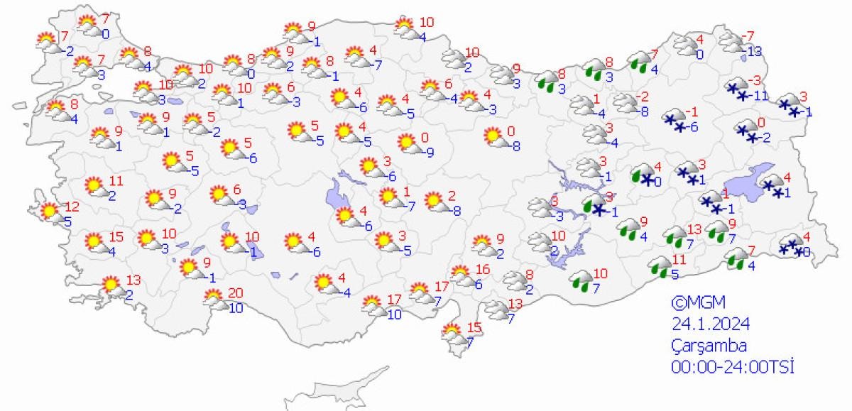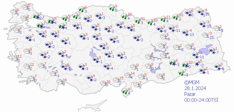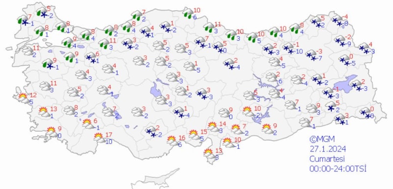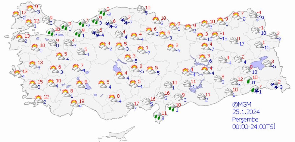 Yağışlı sistem Hakkari ve Şırnak çevrelerinde yağış yapacak ancak yurdumuzu terk ediyor. Buna karşılık perşembe günü yurdumuzun Karadeniz üzerinden gelen yeni bir soğuk ve yağışlı sistemin etkisi altına girmesini bekliyoruz. Bu yeni sistemin etkisiyle perşembe günü Marmara'nın doğusu ve Batı Karadeniz'de yağışlar görülecek. Kıyı kesimlerde genellikle yağmur şeklinde görülecek yağışların Batı Karadeniz'in iç kesimlerinde kar şeklinde olmasını bekliyoruz. Cuma günü yeni sistem daha da genişleyerek ülke üzerindeki etkisini artırıyor. Marmara'da, Batı Karadeniz'in tamamında yağış bekliyoruz. Orta Karadeniz'in de iç kesimlerinde yağış olacak.