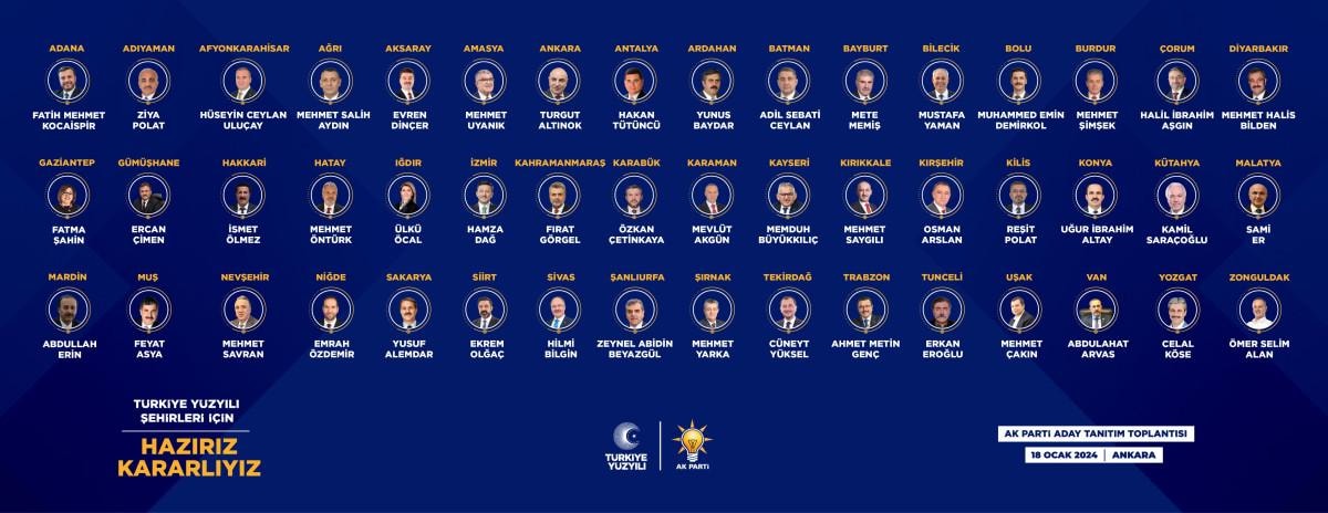 7 Ocak'ta ilk olarak 26 ilin açıklandığı AK Parti'de 48 ilin adayı da bugün belli oldu.