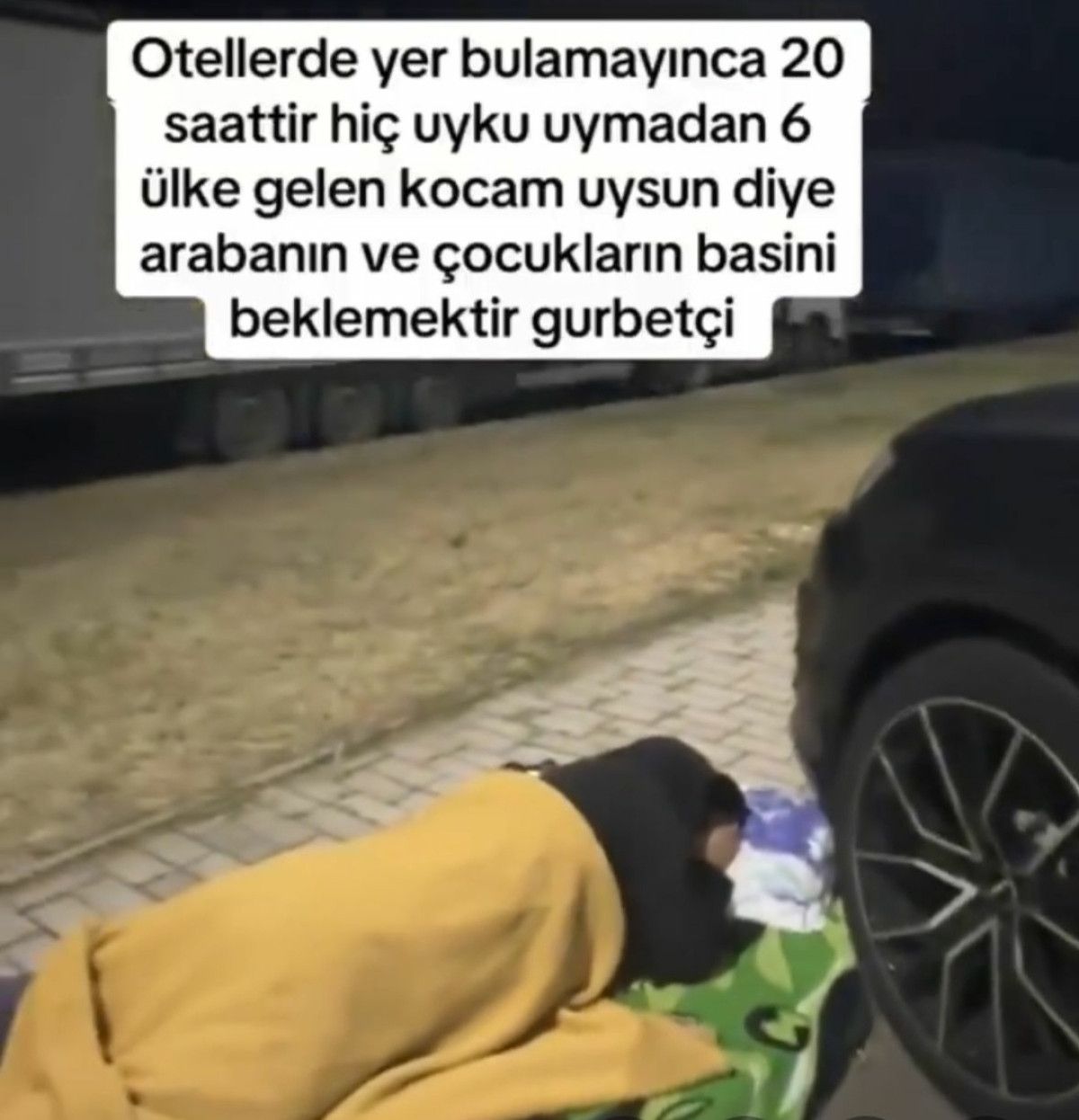 "Otelde yer bulamayınca 20 saat hiç uyumadan 6 ülke gelen kocam uyusun diye, arabanın ve çocukların başında beklemektir gurbetçi…"