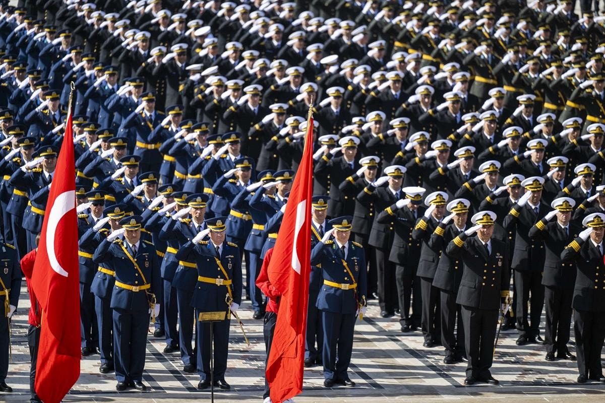 Devlet erkanının ayrılmasının ardından Türk Hava Kuvvetleri'nin akrobasi timi SoloTürk, Türkiye Cumhuriyeti'nin 100. kuruluş yıl dönümü dolayısıyla Ankara semalarında gösteri uçuşu gerçekleştirdi.