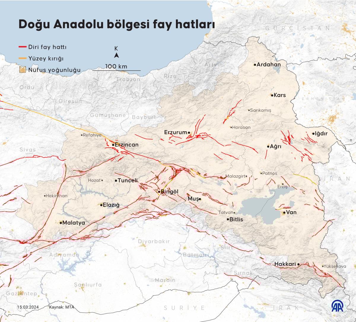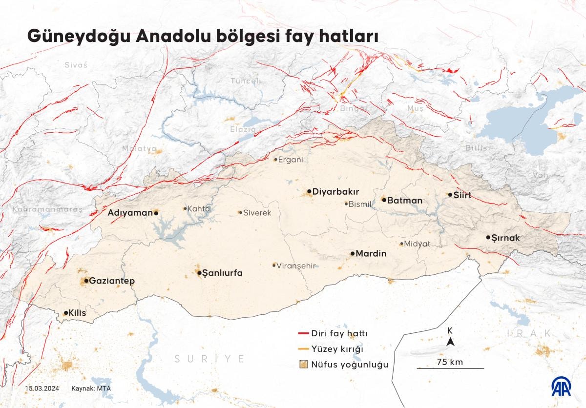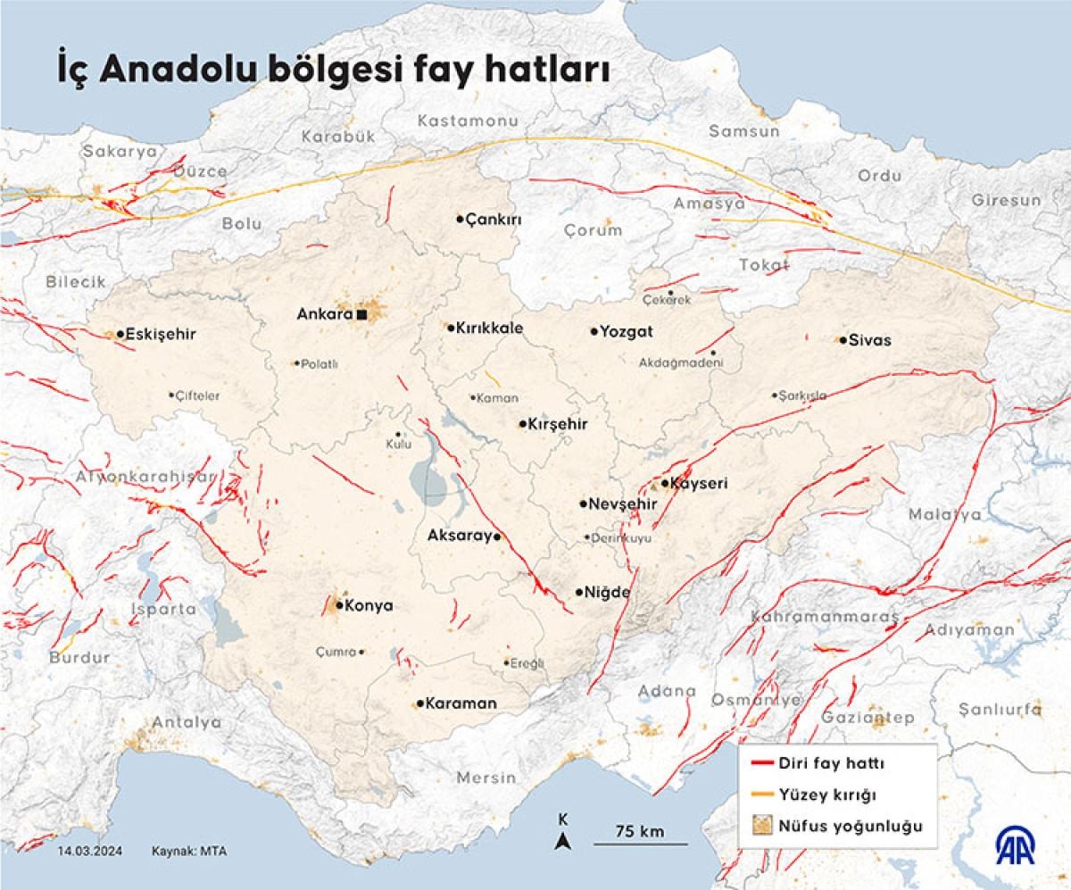 MTA güncellenmiş Türkiye diri fay hattı haritası kapsamındaki bilgilerde; Türkiye'de 45 ilde bulunan 485 diri fayın 5.5 ve üzerinde deprem üretebildiği de ortaya konuldu.