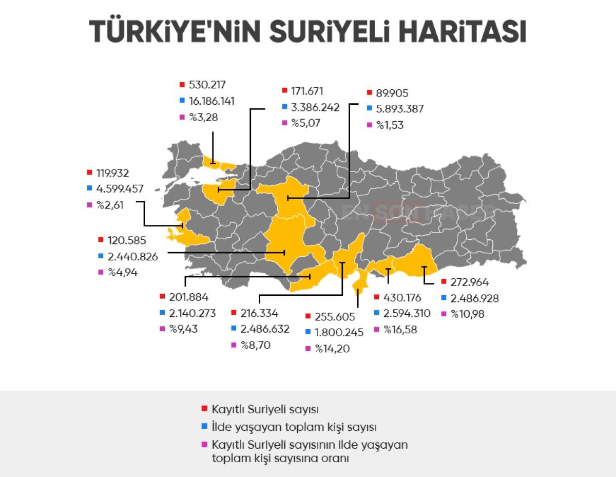 Kayıtlı Suriyeli nüfusunun İstanbul’da yaşayan toplam kişi sayısına oranı ise yüzde 3,28.
