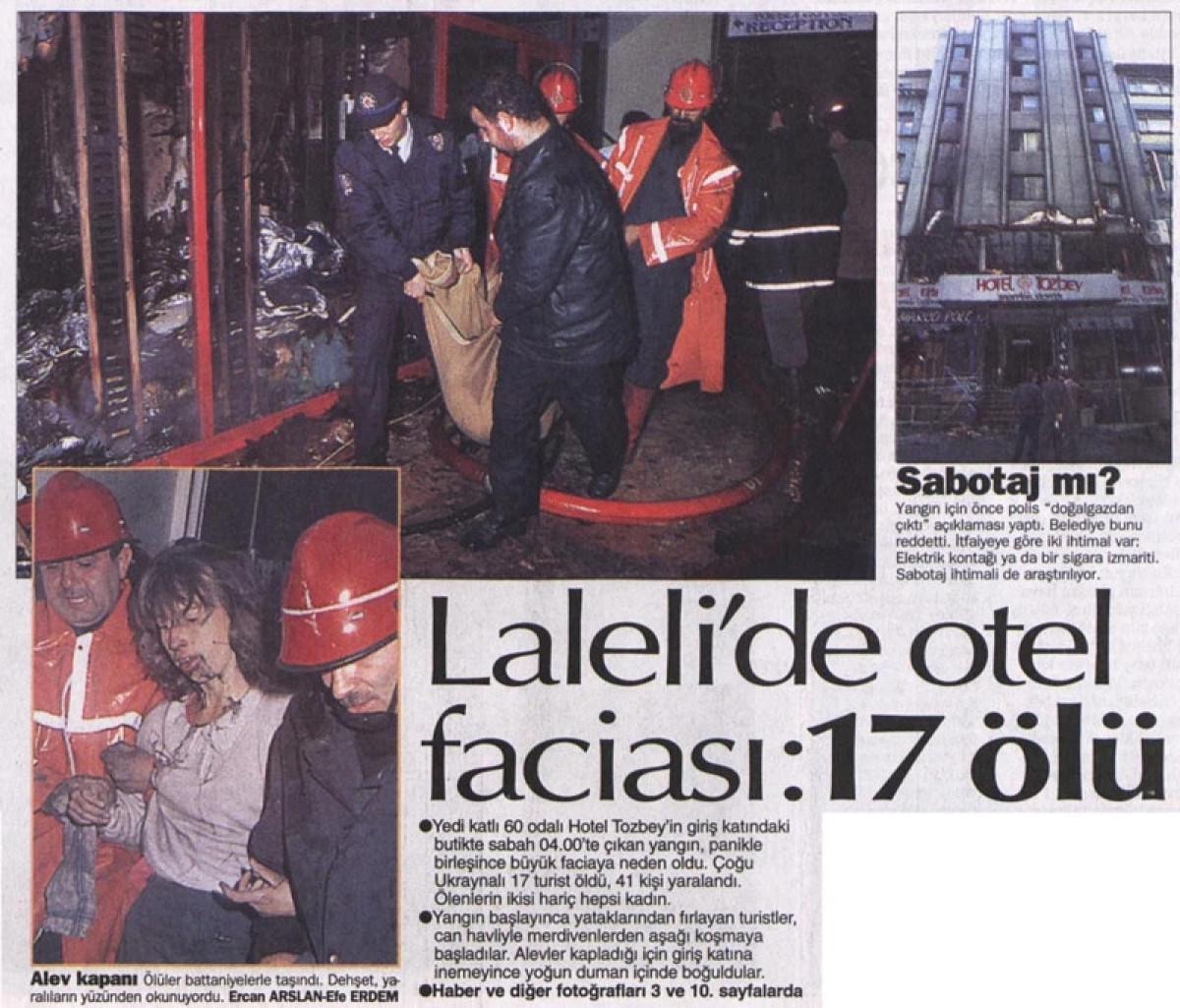 17 KASIM 1996 VE 1983 - LALELİ OTEL YANGINLARI