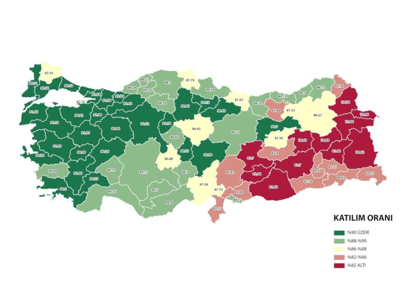 Türkiye genelinde katılım oranı